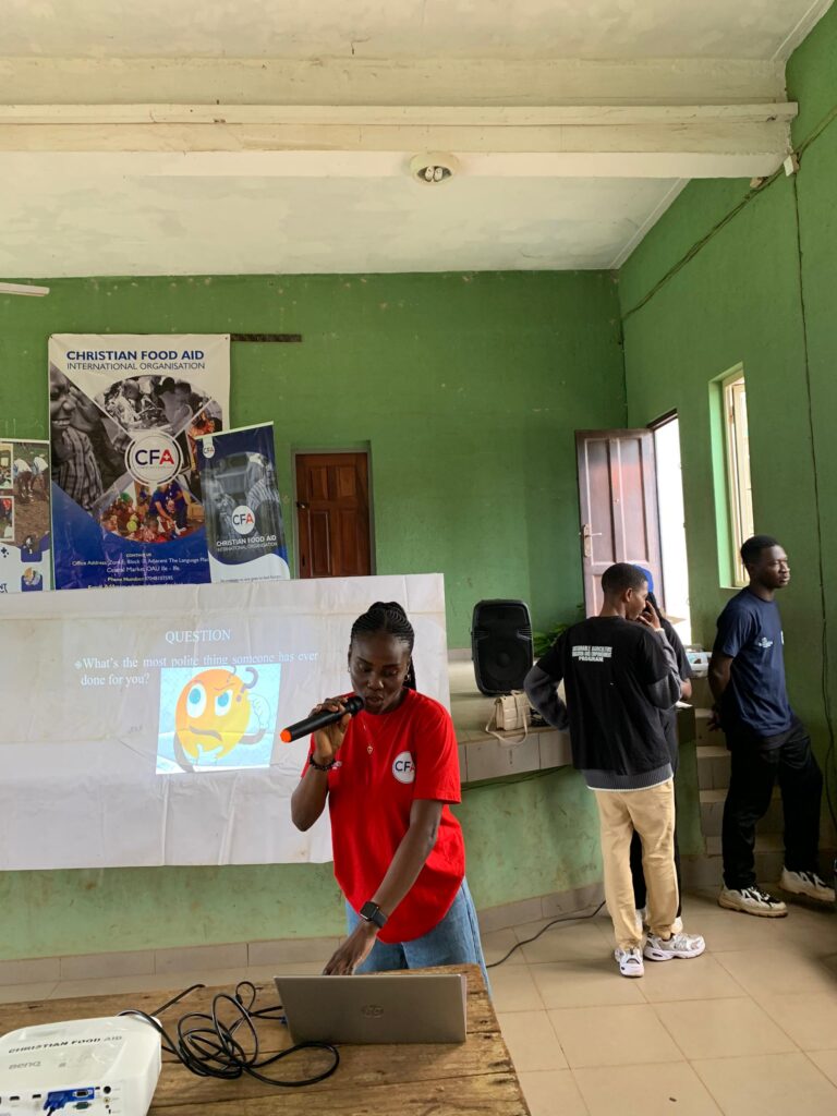 The program commenced with an opening prayer led by Kenny Ojo, one of the CFA staff. This was followed by a welcome speech from the CFA Project Manager, who expressed appreciation for the schools’ involvement and shared the importance of the SAEE initiative.